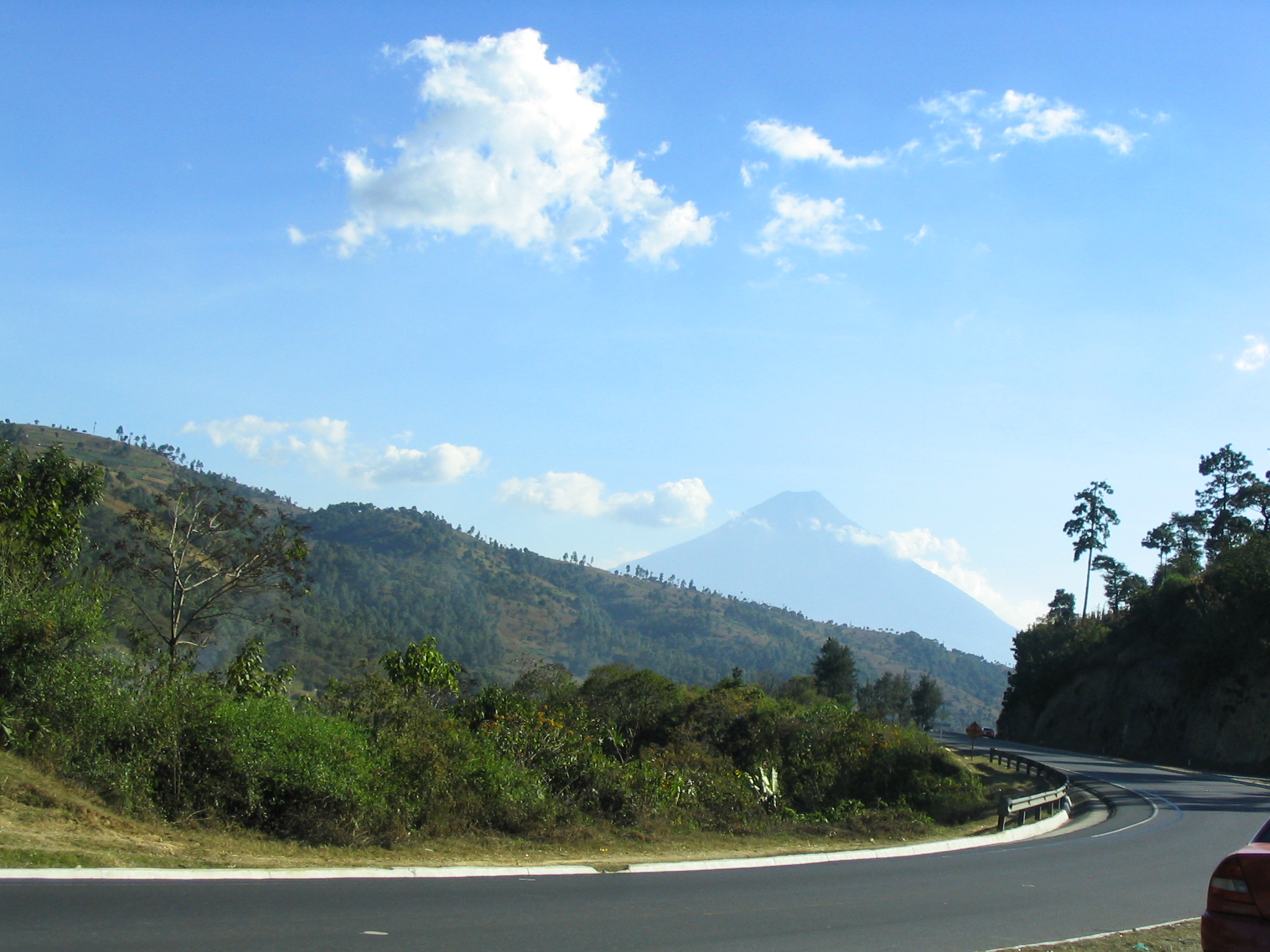 Der erste Bick auf einen Vulkan.Bei Guatem.Citty.Ich bin in einem Rutsch quer durch Guatemala gefahren nach Pannacel.
